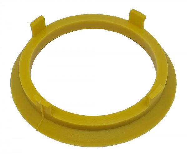 Dieser Zentrierring steht aus der Alufelge heraus. So kann die Felge nicht plan an dem Radflansch anliegen! Die Felge wird nicht rund laufen. Dieses passiert wenn die Phasen in der Felge und im Zentrierring nicht gleich sind.