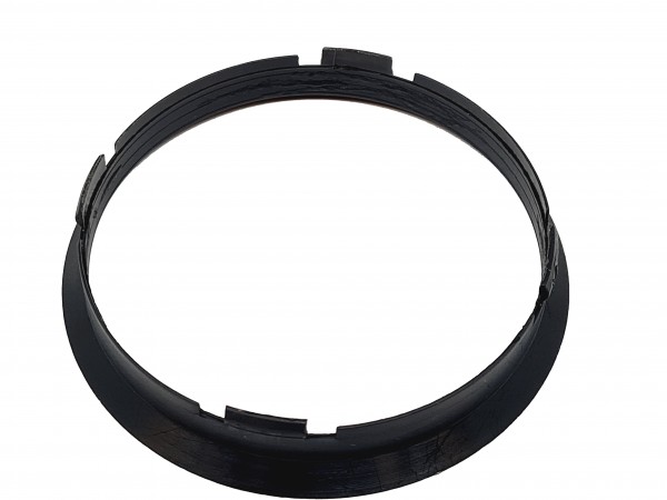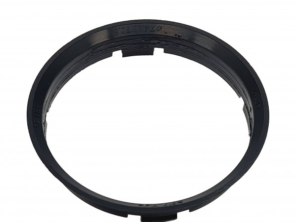 Dieser Zentrierring steht aus der Alufelge heraus. So kann die Felge nicht plan an dem Radflansch anliegen! Die Felge wird nicht rund laufen. Dieses passiert wenn die Phasen in der Felge und im Zentrierring nicht gleich sind.