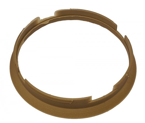 Dieser Zentrierring steht aus der Alufelge heraus. So kann die Felge nicht plan an dem Radflansch anliegen! Die Felge wird nicht rund laufen. Dieses passiert wenn die Phasen in der Felge und im Zentrierring nicht gleich sind.