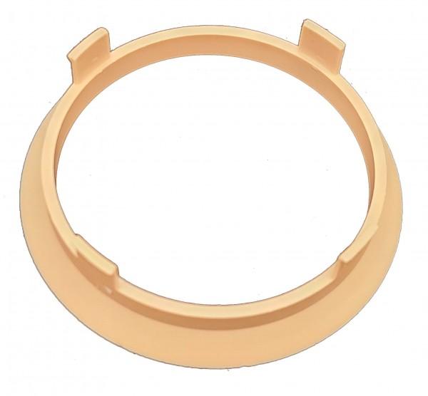 Dieser Zentrierring steht aus der Alufelge heraus. So kann die Felge nicht plan an dem Radflansch anliegen! Die Felge wird nicht rund laufen. Dieses passiert wenn die Phasen in der Felge und im Zentrierring nicht gleich sind.