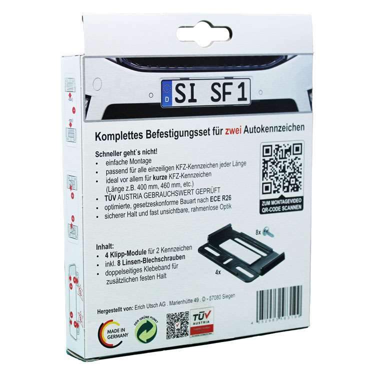 noch dezenter! Das komplette Befestigungsset für zwei Autokennzeichen - SIMPLE-FIX!